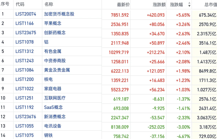 行情层面,今日创新药继续强势行情,短线崛起的有色、黄金板块也仍在走强。但整体上看,各大板块间涨跌分化明显,行情机会偏向结构性。