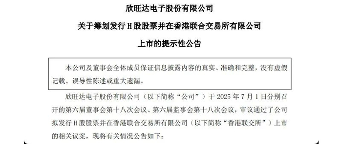7月2日,总部在深圳的欣旺达公告称,拟发行H股登陆港交所,深化全球化战略。