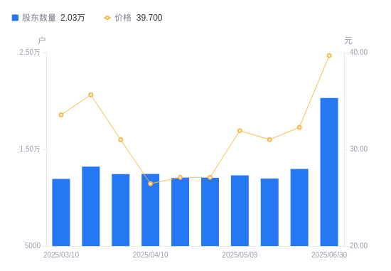 近一年(2024年6月30日至2025年6月30日),智立方A股股东户数从1.06万户,增加至2.03万户,增幅91.57%,区间股价上涨45.84%。