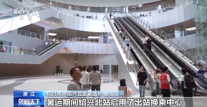 杭台高铁绍兴北站副站长窦雪安:暑运期间绍兴北站启用了出站换乘中心,实现了高铁与地铁、网约车、私家车等交通方式的无缝衔接。