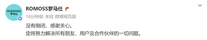 7月3日,罗马仕深夜发文:没有倒闭,感谢关心。定将努力解决所有朋友、用户及合作伙伴的一切问题。