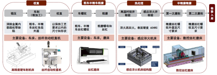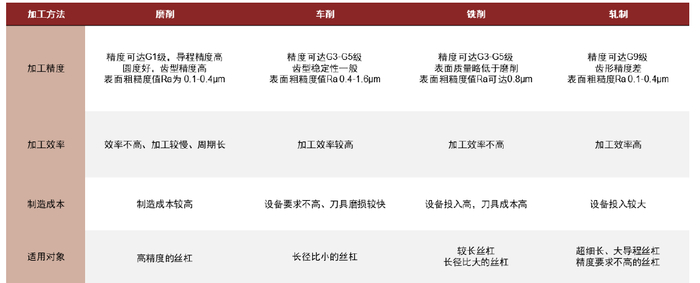 资料来源:《行星滚柱丝杠设计》(王家健,2021),恒进感应招股书,《高精度滚珠丝杠磨床的设计与开发》(肖建军,2014),《精密行星滚柱丝杠副工艺制造与传动性能研究》(郑伟,2021),汉江机床官网,《改进型高精度硬车削机床的制作方法》,集智机电官网,中金公司研究部