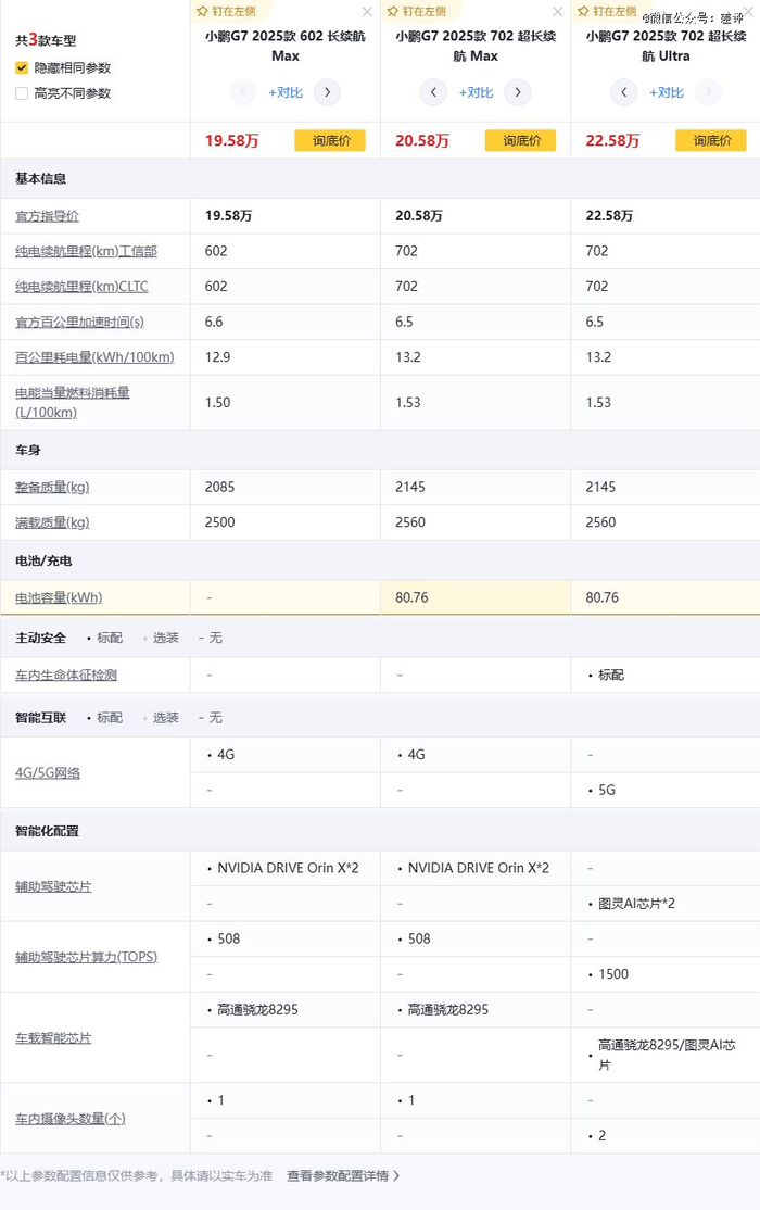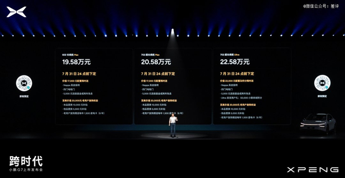 今晚预热了好久的小鹏 G7 终于上市了,一共三个配置,19.58 万 - 22.58 万元。