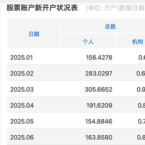 新京报贝壳财经讯(记者胡萌)A股投资者热情和活力不减。日前,上交所官网公布的数据显示,2025年6月,A股新开户165万户,上半年A股累计新开1260万户,较2024年上半年开户数949万户,增长32.77%。