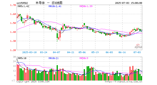 7月3日半导体产业ETF(159582)份额减少150.00万份,最新份额1.26亿份,最新规模1.78亿元