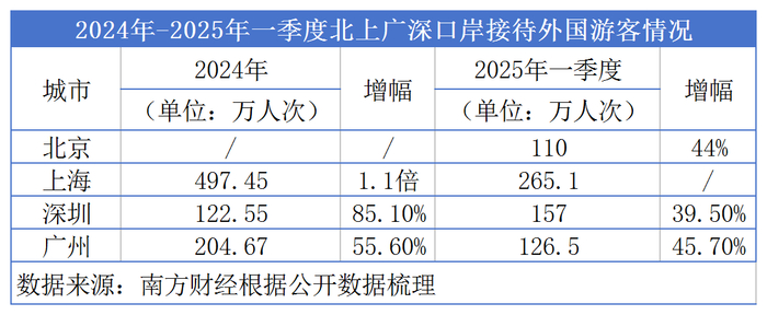 2024年,深圳接待外国游客122.5万人次,紧随上海、广州。2025年一季度,深圳接待外国游客已经达157万人次,同比增长39.5%,超过广州,仅少于上海。