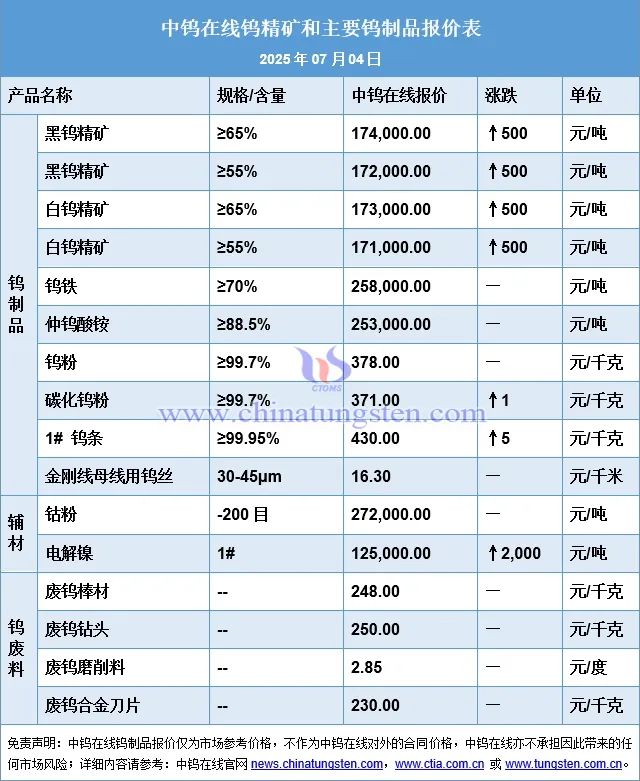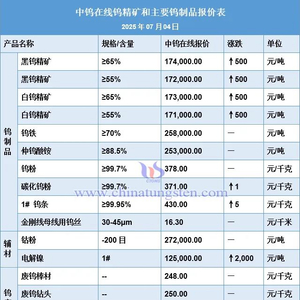 2025年7月4日钨价格一览