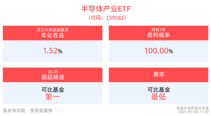 跟踪精度方面,截至2025年7月3日,半导体产业ETF近2月跟踪误差为0.025%,在可比基金中跟踪精度最高。