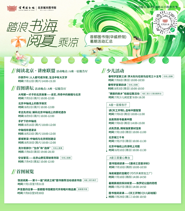 首都图书馆推出“踏浪书海 阅夏乘凉”暑期系列活动,部分区域延长开放时间