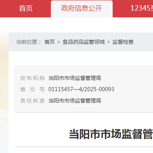 湖北省当阳市市场监督管理局食品安全监督抽检信息公告(2025年第5期)