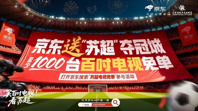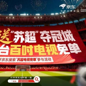 特别值得一提的是,京东联合海信、TCL等众多知名电视品牌,重磅推出“京东送苏超夺冠城1000台百吋电视”活动。即日起至7月30日,上京东APP搜索“苏超电视免单”进入活动页面,购买指定98吋、100吋电视的江苏用户,若所在城市队伍最终获得“苏超冠军”,就有机会获得至少1000个名额的免单福利,并且100%免费送装到家。与此同时,用户在本赛季“苏超”期间购买京东首发的电视品类闪电新品,还有机会抽取“苏超”比赛门票和酒旅套餐等惊喜好礼。