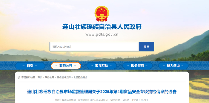 广东省清远市连山壮族瑶族自治县市场监督管理局关于2025年第4期食品安全专项抽检信息的通告