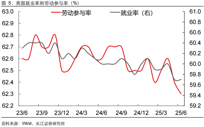 失业人群中再进入者(-14.3万)大幅下降,以及劳动参与率数据的延续回落,也佐证了这一观点。