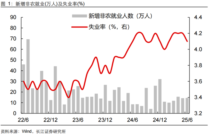 1. 2025年6月,美国新增非农就业人数超预期回升,失业率回落,时薪环比增速回落。