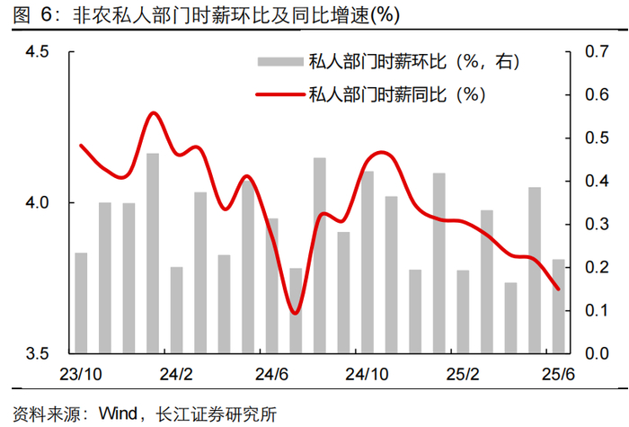 6月非农私人部门时薪环比增速降至0.2%,低于预期,同比增速降至3.7%,同样低于预期。