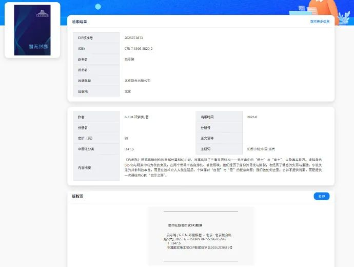 歌手邓紫棋官宣首部长篇科幻小说《启示路》7月10日开启预售,售价分别为89元和298元