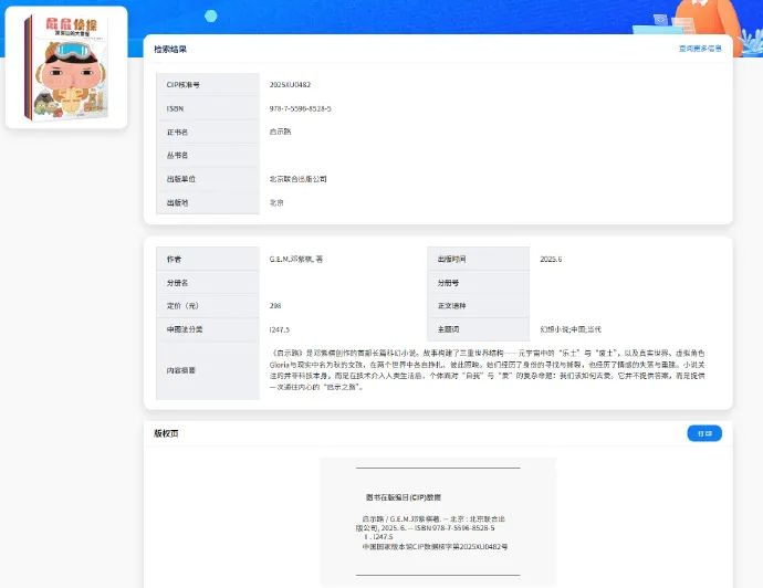 据了解,该小说共分为两个版本,售价分别为89元和298元。出版时间为2025年6月。主题词为幻想小说。