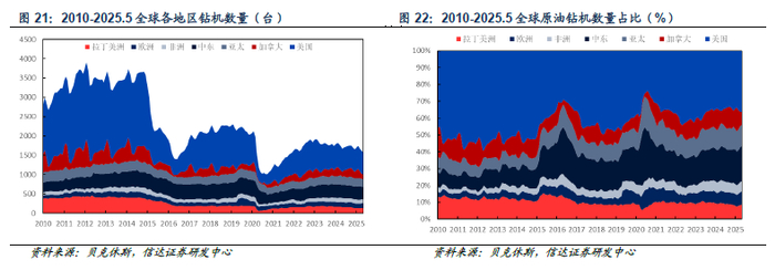 2025年5月,全球活跃钻机总数为1576台,较2025年4月减少40台,其中加拿大116台(-22台)、亚太206台(+3台)、美国573台(-13台)、中东327台(-8台)、拉美136台(+6台)、非洲94台(-3台)、欧洲123台(-3台)。