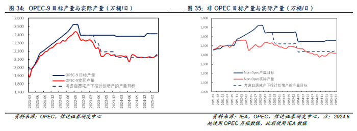 2024年6月,OPEC+ 决议220万桶/天的自愿减产将在2024年9月至2025年9月逐步退出,平均每月退出减产18万桶/天。165万桶/天的自愿减产将延长至2025年12月。
