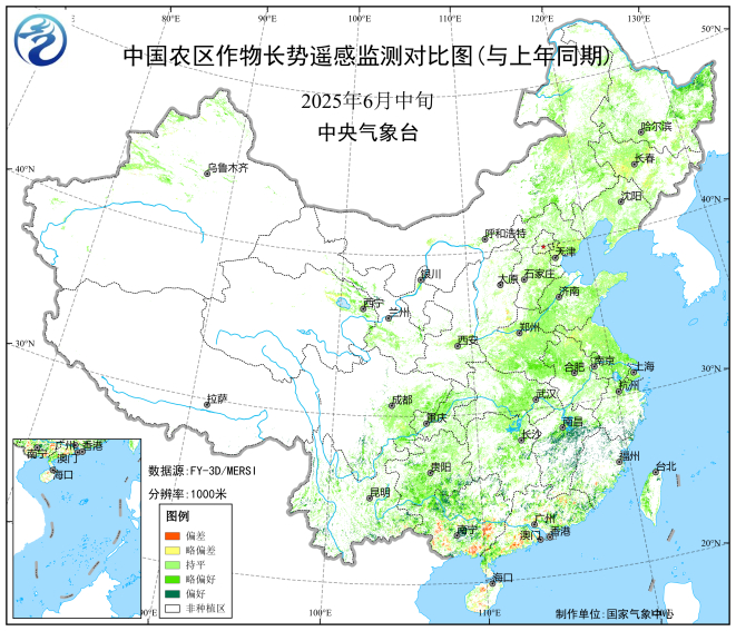 图5 全国农作物长势遥感监测(2025年6月中旬)