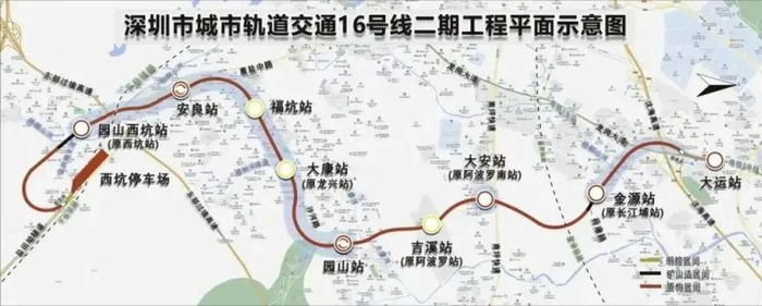 16号线二期线路由起点大运站引出,终至园山西坑站。