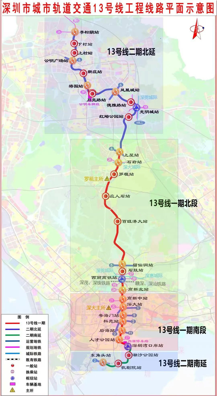 13号线一期北段南起自高新北站,一路向北抵达上屋站,也就是说宝安人民最快可能10月份就能坐上该地铁了。