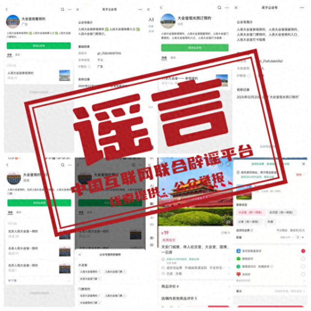 然而近日,中国互联网联合辟谣平台接到网民举报,一些网络平台存在违规使用人民大会堂建筑图片标识和名称的现象,不法分子非法售卖、倒卖人民大会堂参观门票,引流牟利、误导游客:有的仿冒人民大会堂账号,有的将门票价格抬高数倍进行兜售,还有的收取费用后无法提供有效门票,损害消费者权益,扰乱正常参观秩序,给人民大会堂形象造成负面影响。