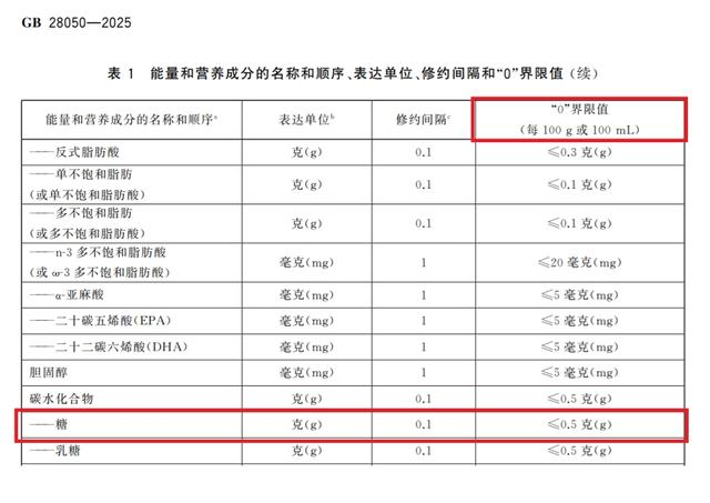 我国食品安全国家标准《预包装食品营养标签通则》里有一个专业术语叫“0”界限值,糖的“0”界限值为每100克或100毫升食品中不超过0.5克。