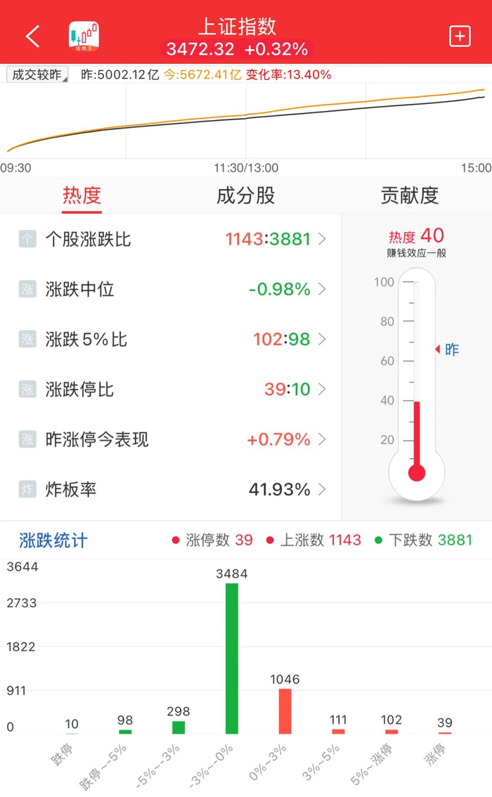 但好像大家不是很兴奋,赚钱效应也非常一般。尤其今天是周五,本来想赚点钱周末去消费。好家伙,4000+下跌,中位数-1.03%,这真能促进消费么!