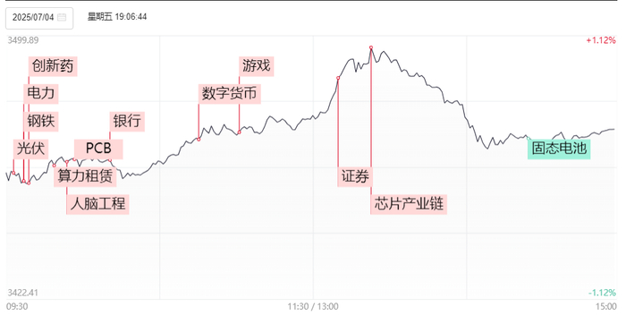 盘面上,稳定币、数字货币概念震荡回升,信雅达、京北方、霍普股份等多股涨停;大金融板块持续活跃,券商、银行、保险、多元金融板块走强,大智慧一度触及涨停,中信银行、浦发银行、兴业银行等10余股再创历史新高;创新药概念股表现强势,广生堂、热景生物、塞力医疗等多股涨停;“反内卷”方向发力,钢铁股延续强势,凌钢股份、柳钢股份涨停;光伏板块盘初走强,亚玛顿封板;电力股持续活跃,韶能股份、金房能源封板。此外,游戏、算力概念、数据确权等方向盘中均有所表现。