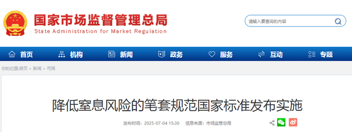 近日,市场监管总局(国家标准委)发布实施《书写和记号工具 降低窒息风险的笔套规范》(GB/T 39023—2025)国家标准。