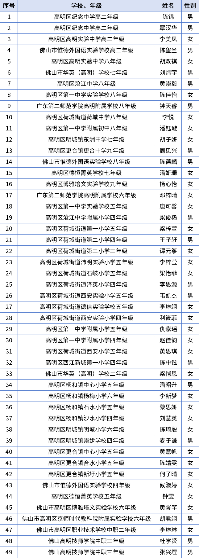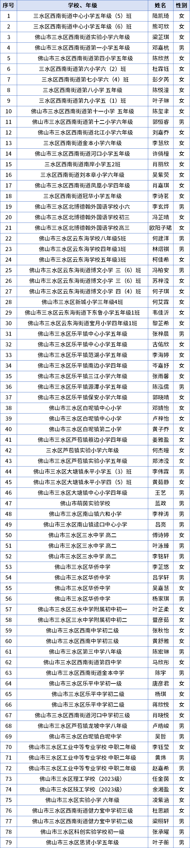 经学校推荐,市、区教育局审核,拟授予925名同学2024-2025学年度佛山市优秀学生称号,400名同学2024-2025学年度佛山市优秀学生干部称号。现予以公示。