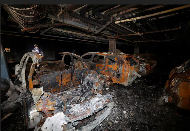 2024年8月,韩国一辆奔驰EQE在地下停车库起火 路透社