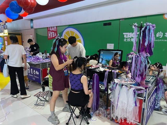 7月4日,林俊杰演唱会北京站第4场在国家体育场“鸟巢”举办,场馆附近的新奥购物中心再度化身一片“紫色海洋”。近段时间以来,明星演唱会在京城各大场馆接连精彩上演,动辄吸引上万名观众前往。观众观演热情持续高涨,商家也纷纷优化观演体验,编发、妆造、闪粉脸贴等美妆小生意,带动一大波消费热潮。