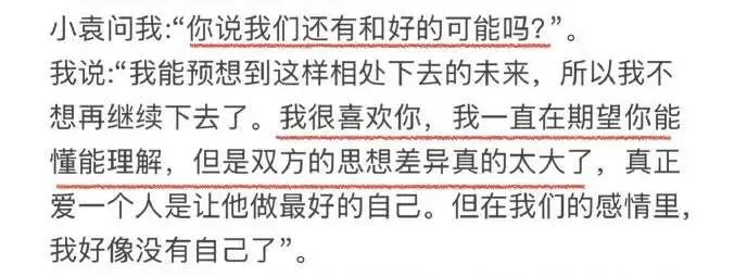 而面对男友的挽回,胡楚靓最终以“思想差异过大”为由坚持结束关系。