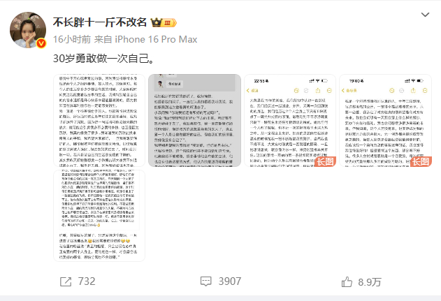 此前,胡楚靓在社交平台发布长文《30岁勇敢做一次自己》,宣布与恋爱约一年的男友小袁分手,引发全网关注。胡楚靓在其千字长文中称,分手时刻两人相拥而泣,小袁甚至哽咽着询问 “能否和好”。