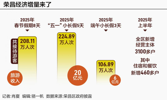 外地游客涌入、餐饮旅游爆红,丰厚了荣昌居民的钱包。