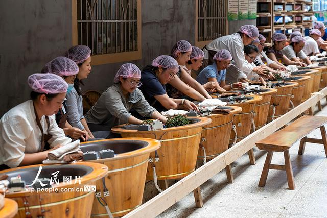 2025年7月3日,学员们在广西梧州市苍梧县六堡镇沁怡六堡茶工匠学校内练习手工制茶技能。培训邀请六堡茶行业专家、劳模工匠和苍梧县六堡茶工匠学校专业教师授课。内容为传统六堡茶制茶工艺、评茶。来自该县转岗待岗职工、新就业形态劳动者、农民工及其子女、困难职工家庭成员等80多人参加培训。通过培训,进一步推动一线工人由“工”变“匠”,让他们掌握“一技之长”后更好地就业创业,加快六堡茶产业高质量发展,做大茶产业规模,助力乡村产业振兴。何华文摄(人民图片网)