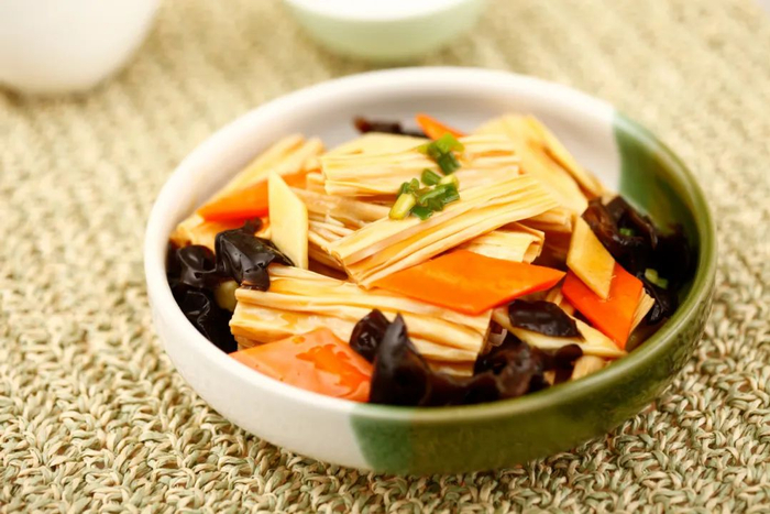 而且,腐竹的蛋白质属于优质蛋白,氨基酸组成接近人体需要。富含主食中容易缺乏的赖氨酸,提高主食中蛋白质的消化吸收率。