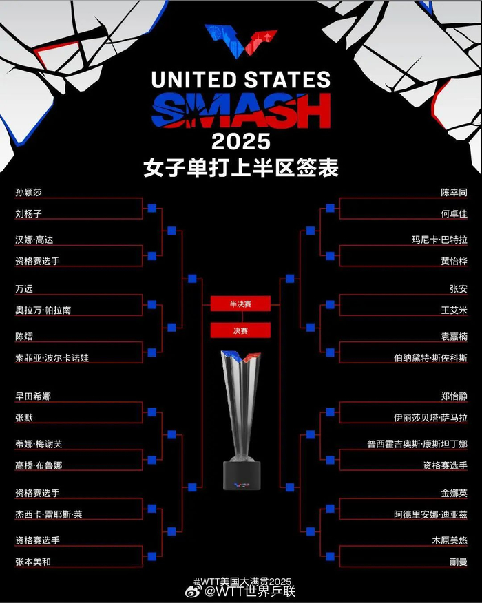 北京时间7月5日凌晨,2025年WTT美国大满贯赛事举行了抽签仪式,随后公布了男女单打、混双、男女双打签表。