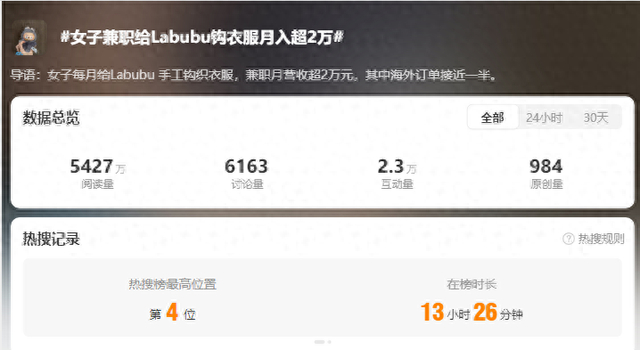 “女子兼职给LABUBU钩衣服月入超2万元。”
