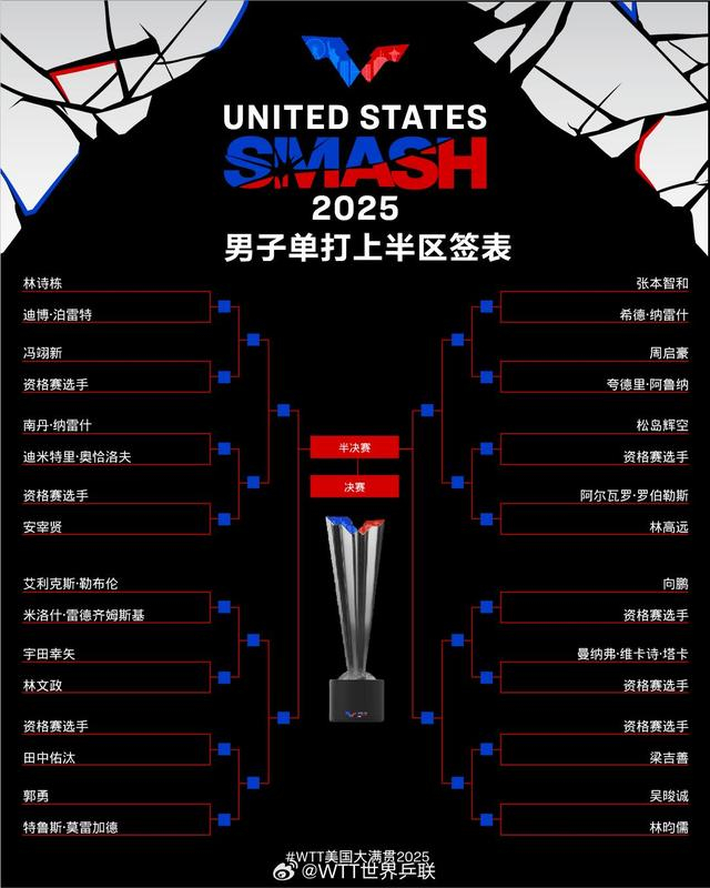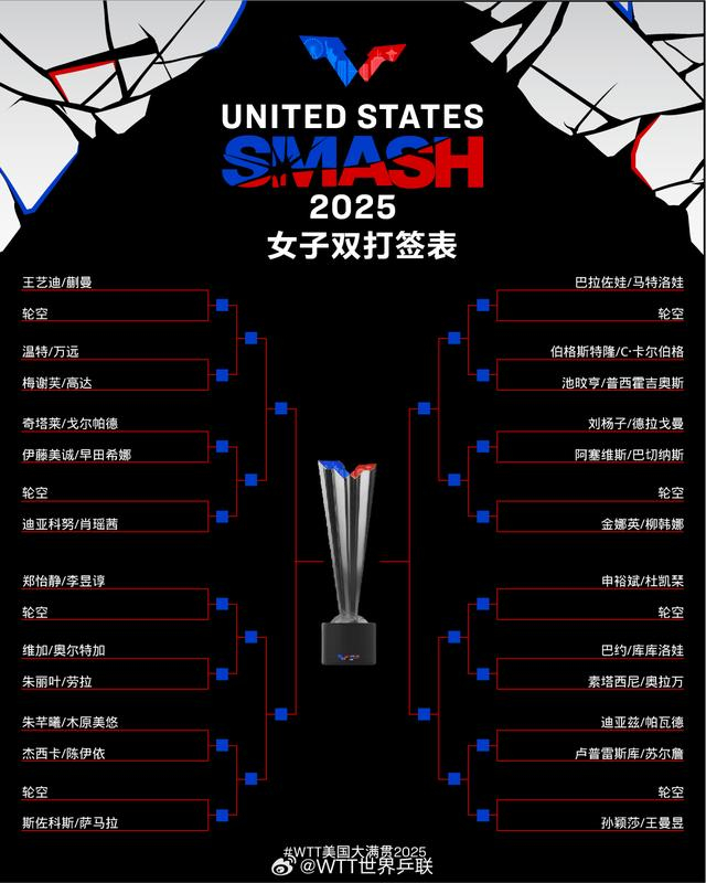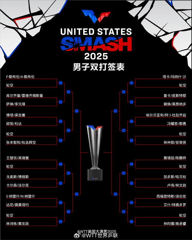北京时间7月5日凌晨,2025年WTT美国大满贯赛事举行了抽签仪式,随后公布了男女单打、混双、男女双打签表。