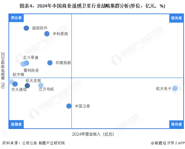 第一梯队是经营情况、技术研发、资本运作能力等方面保持领先优势的企业,如以东方红等为代表的遥感卫星国有制造企业。以长光卫星、天仪研究院、四维图新、航天宏图、微纳星空为代表的民营企业。这些企业掌握制造、发射、运营、数据产品服务等商业遥感卫星全产业链业务,拥有相比其他梯队企业更具备市场竞争力的核心技术以及资本运作能力。