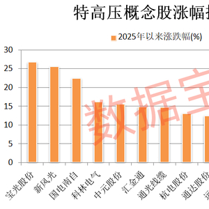 据证券时报·数据宝统计,截至7月4日收盘,特高压概念股合计A股市值超7500亿元。2025年以来概念股平均上涨1.73%,5股累计涨幅超15%,分别是宝光股份、新风光、国电南自、科林电气、中元股份。