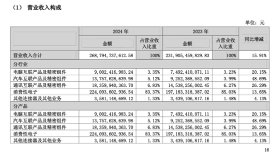 与此同时,通信互联产品及精密组件、汽车互联产品及精密组件的收入占比却在逐步攀升,前者从6%增至6.83%,后者则从2.87%增加到5.12%。