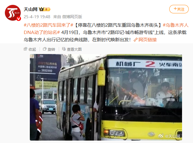 今年4月20日,不少乌鲁木齐人发现,热闹的八楼车站门前出现了真正的2路汽车,许多人的青春记忆在这一天被重新激活。