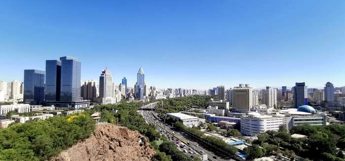 从红山公园俯瞰乌鲁木齐的城市景观。(图/视觉中国)