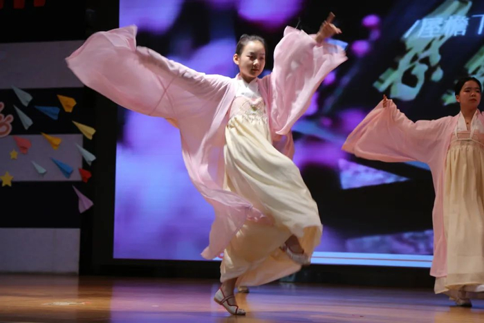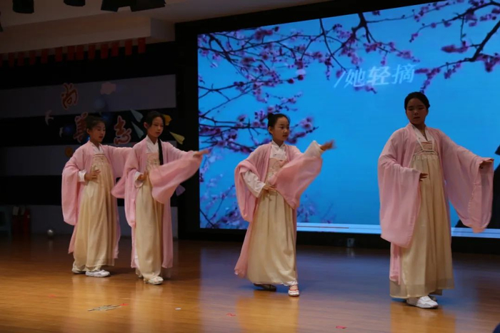 "小小少年舞翩翩,一曲《相思谣》诉童年。纸伞轻转忆同窗,红豆生香情谊长!"