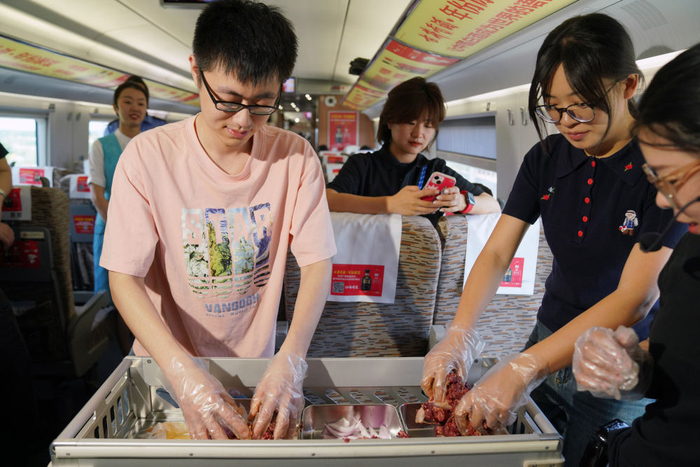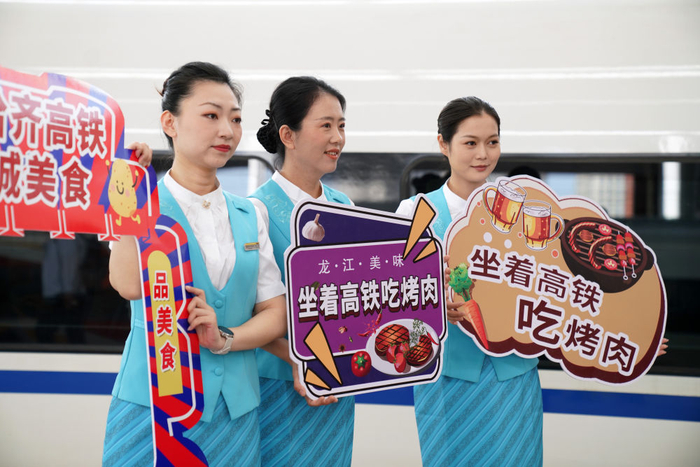 近期,在由哈尔滨西开往齐齐哈尔南的D6993次动车组列车上,中国铁路哈尔滨局集团有限公司联合黑龙江省文旅部门,开展齐齐哈尔烤肉美食文化体验活动。东北特色餐饮产品进入高铁列车,让游客在旅途中打开味蕾,感受齐齐哈尔烤肉独特的风味。