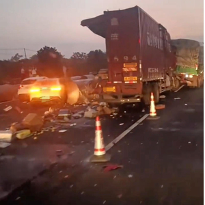 等女朋友驾车行驶到事故发生路段时已经来不及刹车,随后车辆发生碰撞。“(事故现场)撞得挺狠,双车道的车基本全中招。”柯先生说,她女朋友因为获救及时没有生命危险,目前已被送往广东中山接受治疗。